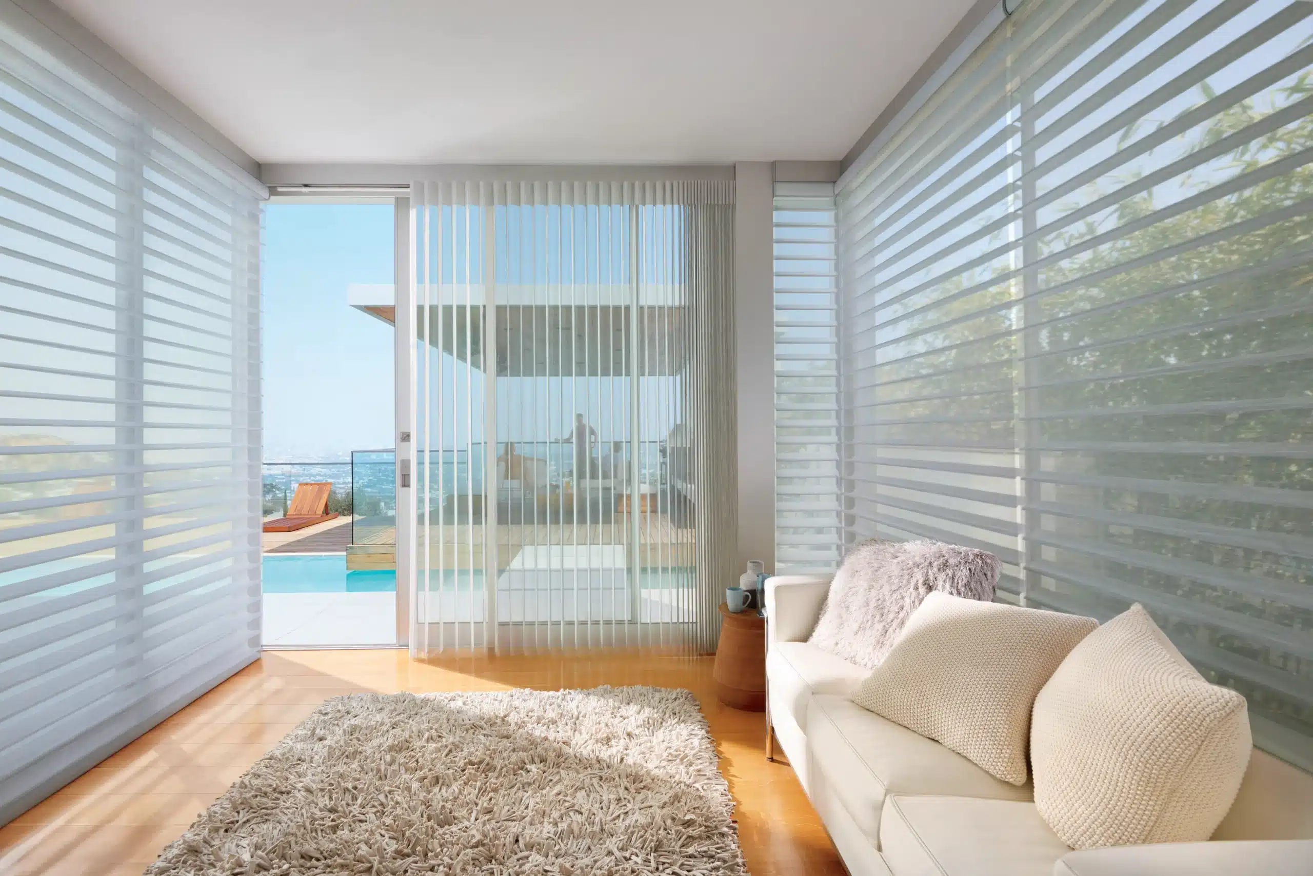 Sheer Shades provide a nice mix of controlling light and privacy. They have thin fabric pieces between two sheer layers, giving a gentle, soft lighting. This innovative window treatment merges the airy beauty of sheers with the practical function of blinds, allowing for a seamless transition from a gentle glow to privacy with a simple adjustment.